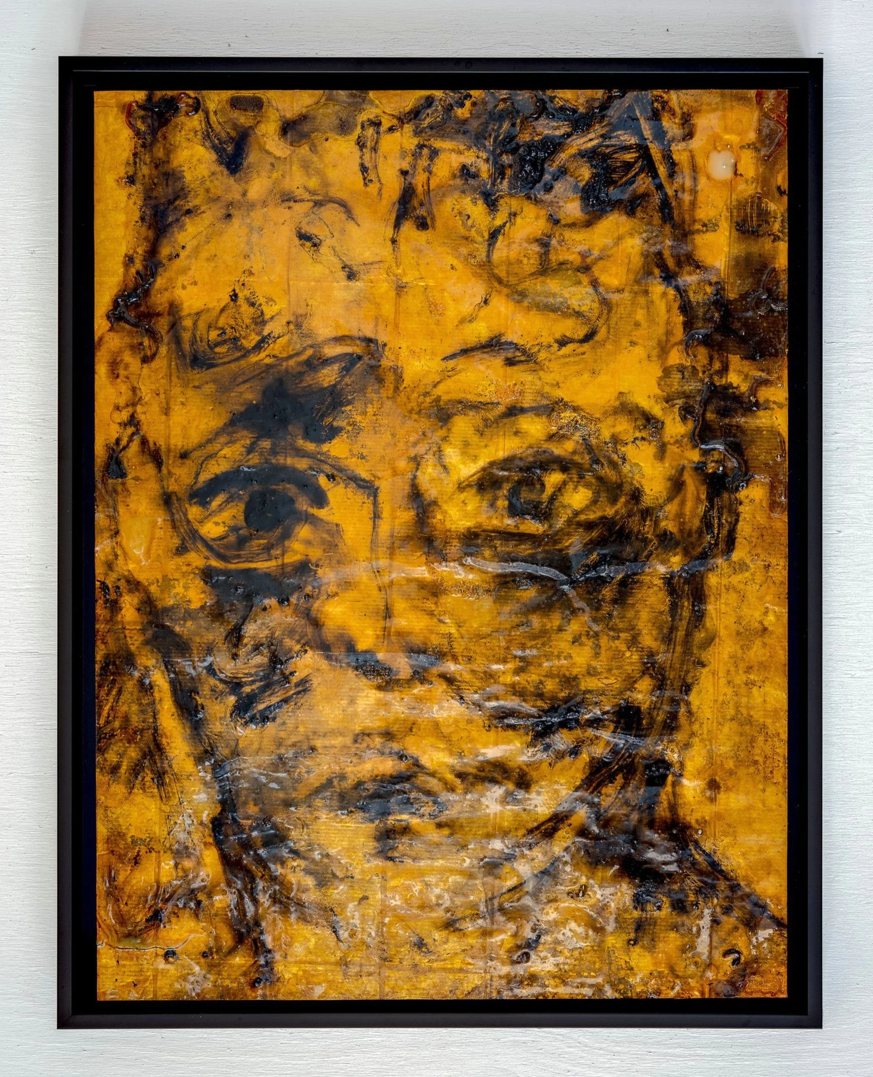 Cardboard, gold foil, kraft paper, oil paint, linseed oil